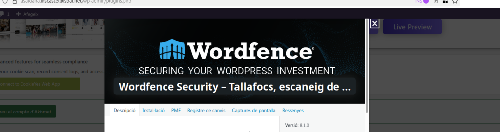 Wordfence: Es el tallafoc i escáner de seguretat de la meva web.