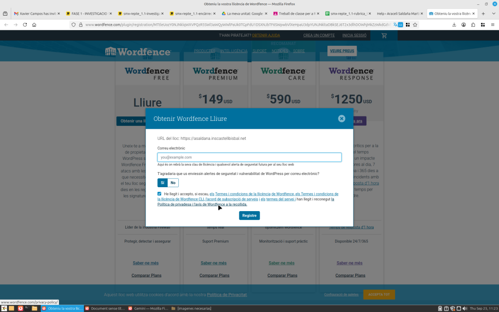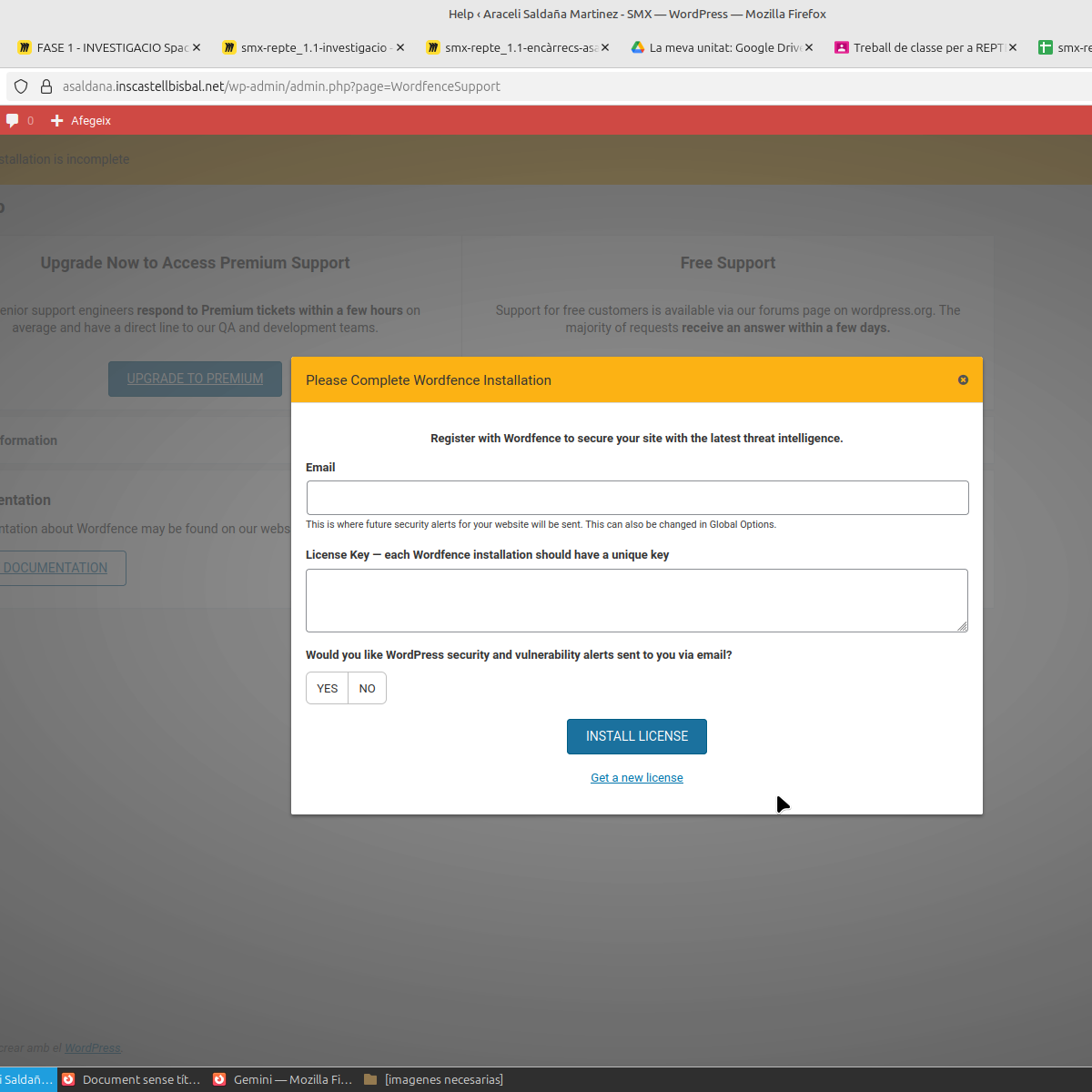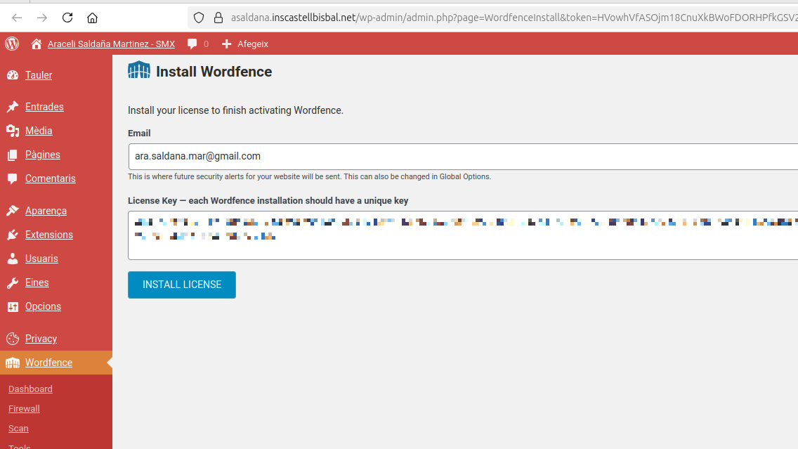 | Plugin: He instal·lat i activat el plugin Wordfence Security (a través del panell d’extensions de WordPress). |