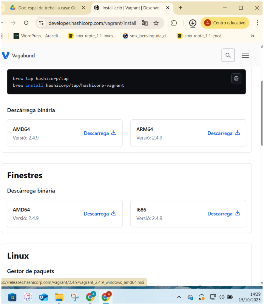 He instal·lat VirtualBox i Vagrant a l’ordinador de casa.