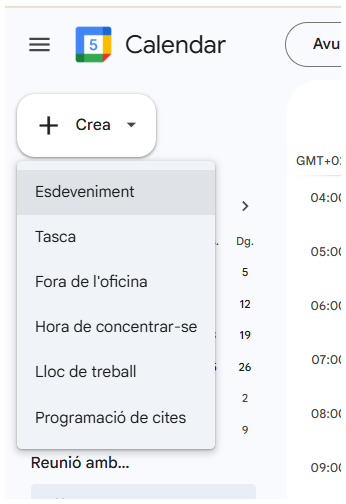 - Accedir al compte de Google i obrir l’eina de Calendari