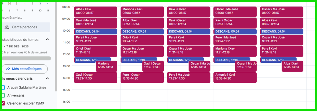 He elaborat un horari acadèmic detallat amb l’objectiu de tenir control absolut sobre la distribució del temps entre les sessions lectives, les proves i altres compromisos d’estudi.