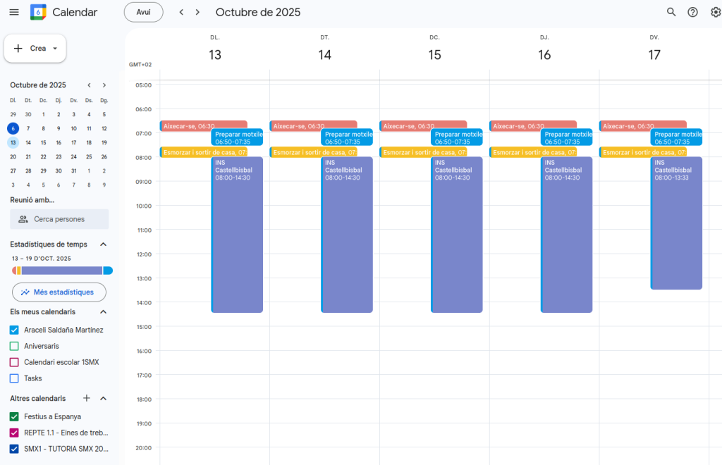 Un cop iniciada la sessió al meu compte personal, vaig procedir a crear el meu horari.