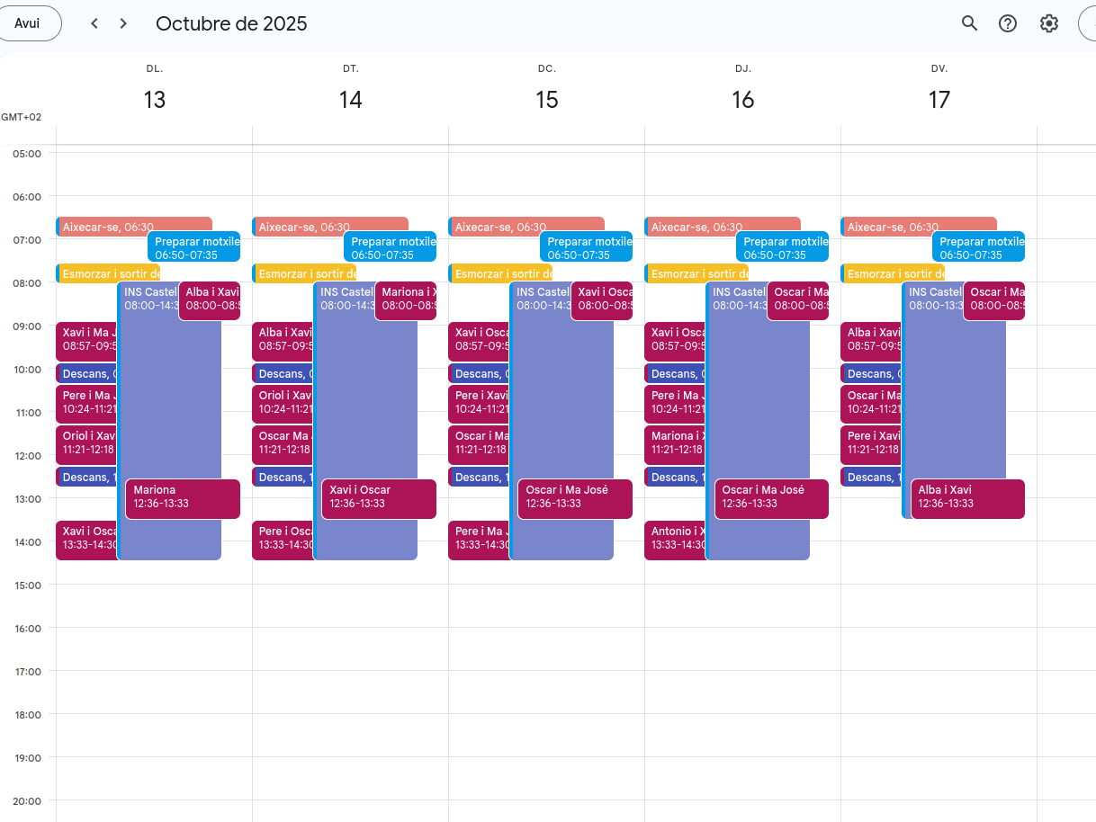Primer, has de localitzar el calendari personal dins la llista de l’esquerra. Accedeix-hi a través de la icona de tres punts i selecciona l’opció per gestionar-ne la ‘Configuració i compartició’. Finalment, utilitza el formulari per afegir l’adreça corporativa com a usuari compartit.